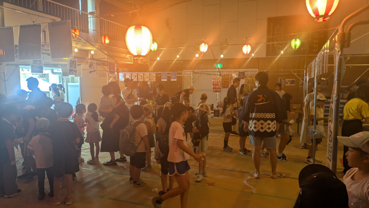 体育館の中にテントの枠組みを4基も立てて、提灯をセットするのもすごい手間がかかって。