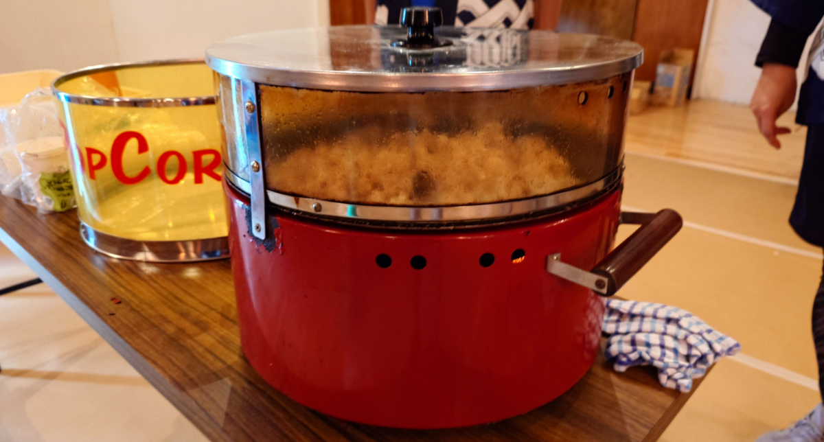かき氷機とポップコーン機も近所の町内会からお借りしたり、